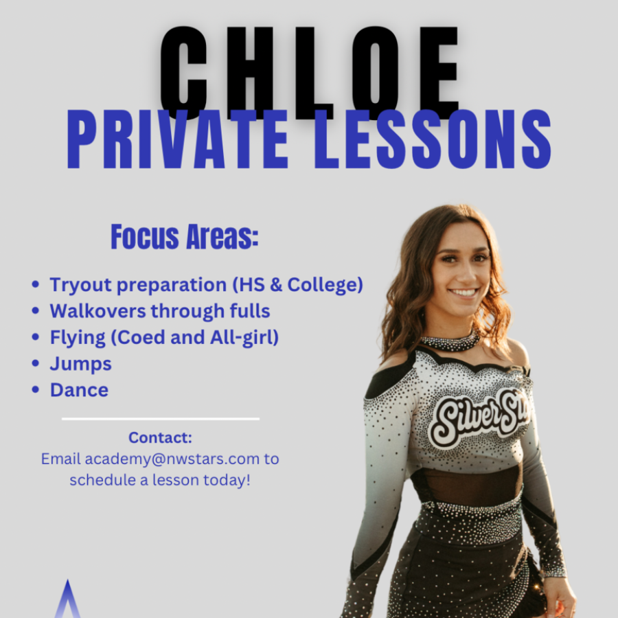 Our private lessons give athletes the opportunity to focus on personalized training tailored to their individual goals. Whether your athlete wants to improve tumbling, flexibility, jumps, dance, or prepare for tryouts, our experienced coaches will design a session specifically to meet their needs.